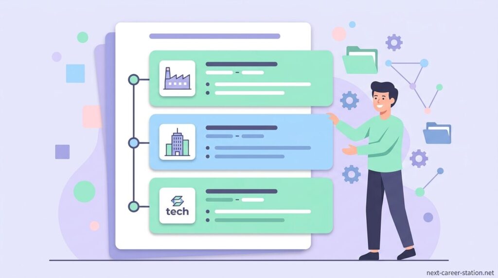 職歴は必ずしも「1社ごとに同じ分量で区切る」必要はありません。採用担当者が見たいのは会社の数ではなく、応募職種に直結する業務内容と成果です。そのため、業務内容が共通しているかどうか、担当していた役割が変わっているかどうかで整理の仕方を変えます。社数が多い場合も、すべてを均等に書くのではなく、どこを厚く、どこを簡潔にまとめるかを判断します。