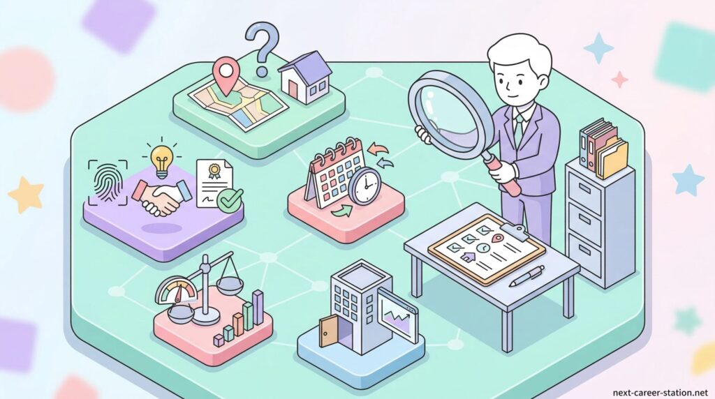 たとえば現在の住居から応募先企業までの通勤時間が片道30分から1時間程度で継続して通勤できる状況か、転勤予定のある家族と同居していないかなどを面接で確認します。このように居住地と通勤条件が安定しているかを確認し、入社後に短期間で退職する可能性がないかを判断します。