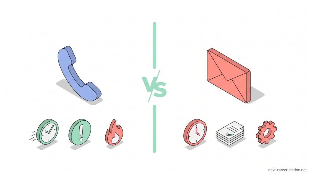 連絡方法を間違えると意図が伝わりにくくなるため、どのようなケースでメールで問題ないのか、逆に電話で伝えるべきなのかを基準で判断できるようにしておくことが大切です。