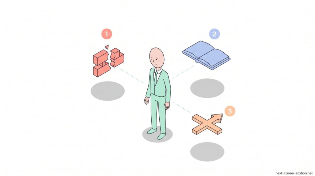 限られた制限時間の中で手が止まるタイミングや迷う場面を具体的に振り返ると、どこで詰まっているのかははっきりします。ここでは、SPIが解けなくなる代表的な3つの原因を順番に整理していきます。