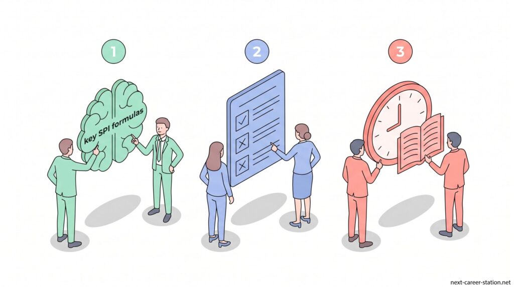 限られた時間の中で結果を出すためには、やることを増やすのではなく、優先順位を決めて取り組むことが重要です。ここでは、SPI対策として最低限これだけ押さえておけば大きく崩れないポイントを具体的に整理していきます。