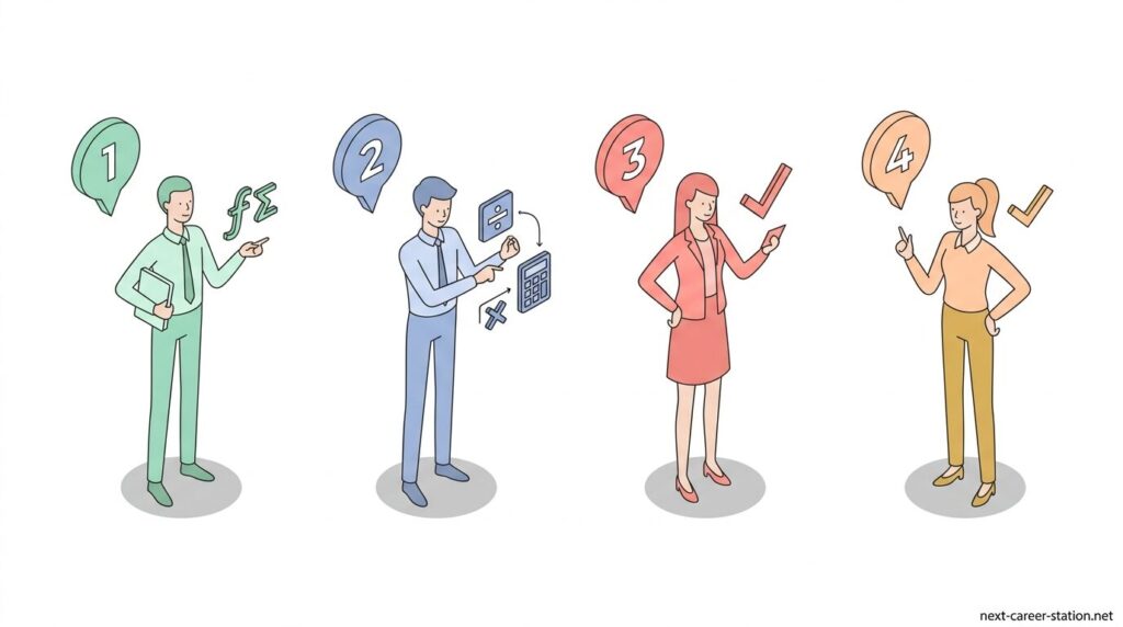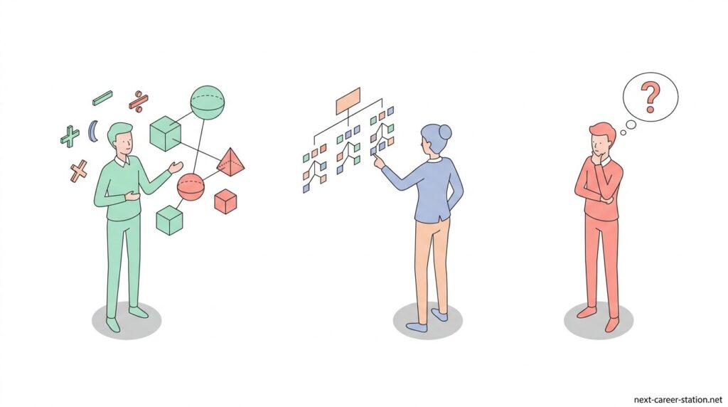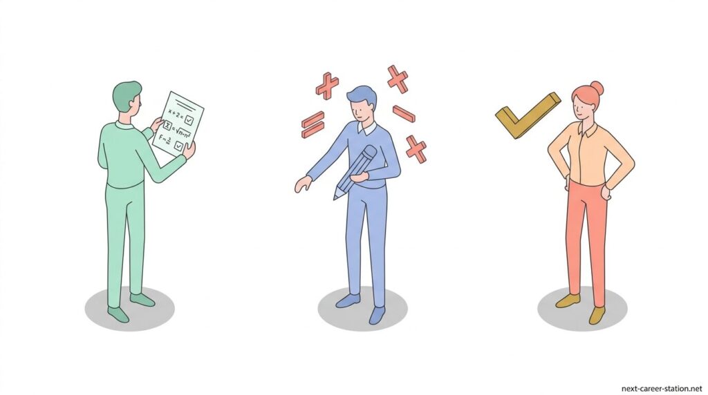 SPIの「場合の数」は、順列と組み合わせの2つだけ整理できれば、考え方はかなりシンプルになります。まずは「順番まで変わるか」を確認してみてください。並び方によって結果が変わるなら順列、選ぶだけで順番が関係ないなら組み合わせです。