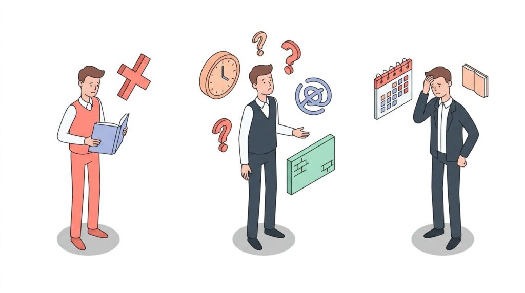 ここでは、対策なしの状態で起こりやすい失敗の原因を、解ききれないケースと基礎問題で差がつくポイントに分けて順を追って整理していきます。