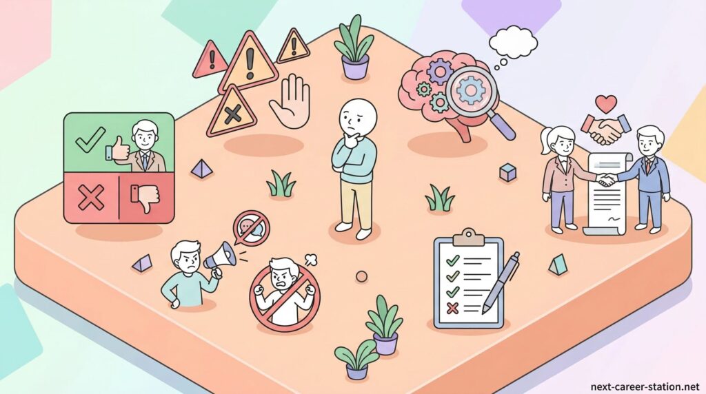 人間関係の問題をそのまま話すと、応募先の企業に対して同じ理由で退職する可能性を心配されるため、対立や不満の内容は説明せず、働く環境や仕事の進め方を理由として整理して伝えます。