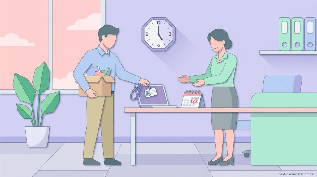 返却の多くは最終出社日に行います。社員証や入館カード、業務用機器などは最終勤務日に総務や直属の上司へ手渡します。退職日まで手元に残っている健康保険証や備品がある場合は、会社の指示に従い郵送で返却します。会社は資格喪失の手続きや備品管理の確認を行うため、返却が完了していることを前提に手続きを進めます。