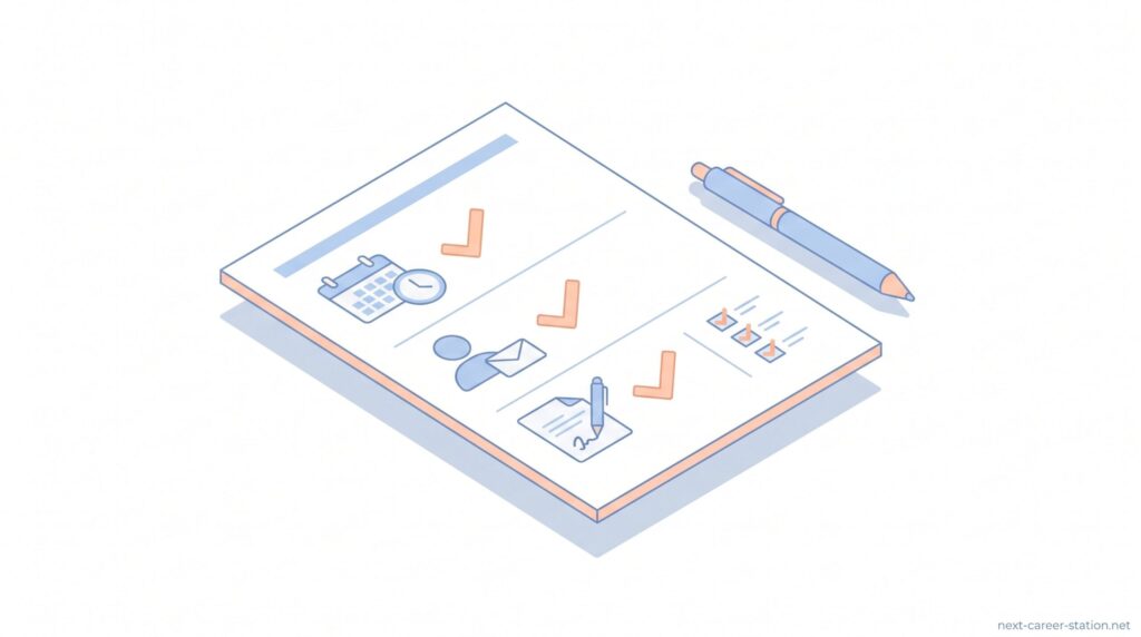 特に確認する箇所は、「提出日」「退職日」「会社名」「代表者名」「自分の氏名」の5点で、記入後に1行ずつ目視で読み直し、日付は西暦ではなく元号で統一されているかまで確認します。